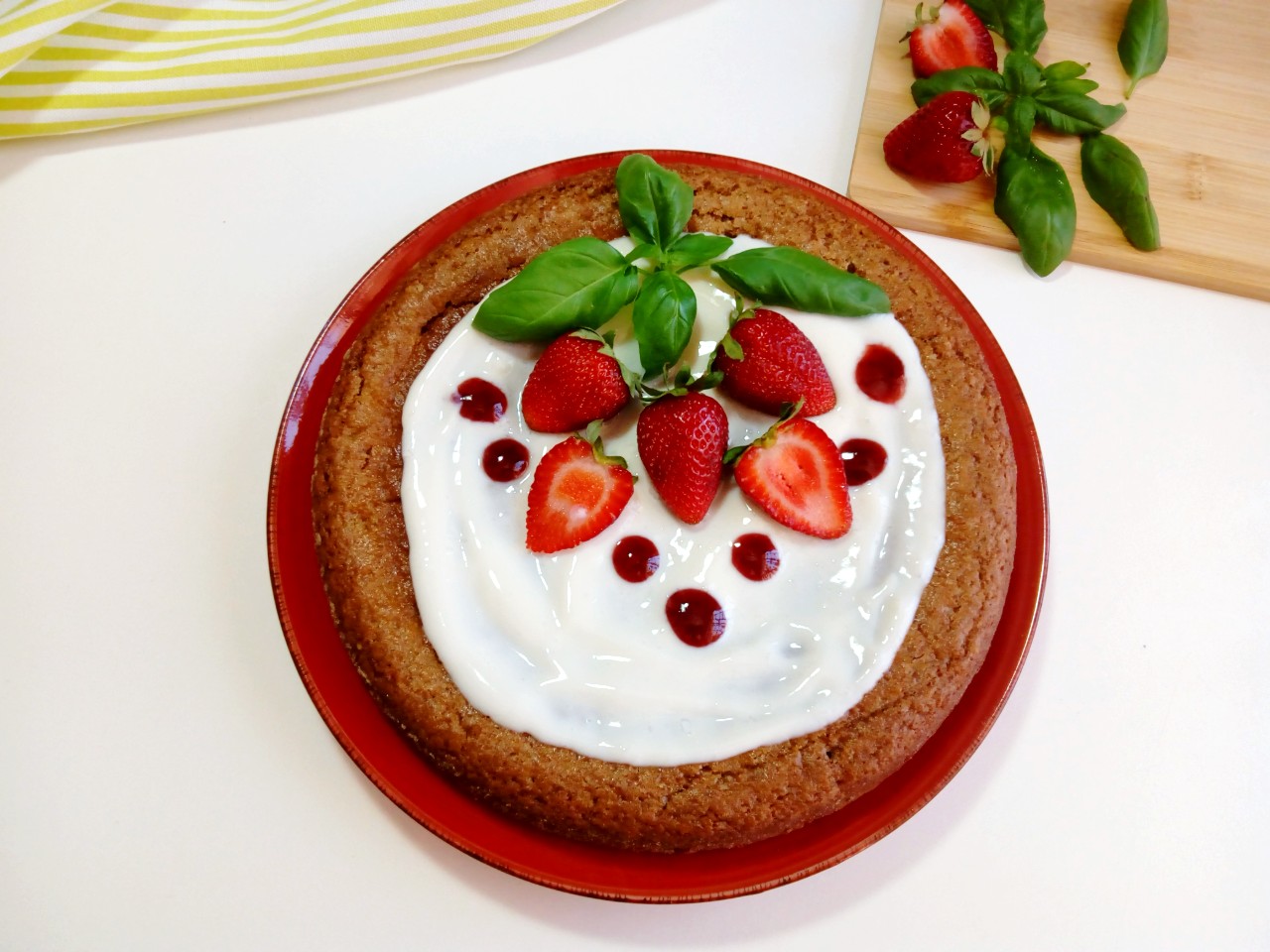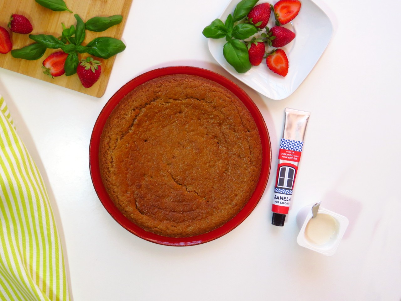 E foi assim, naquele dia, que fiquei inspirada… tinha de fazer algo com os sabores da compota de morango e manjericão… o resultado foi este bolo de iogurte.