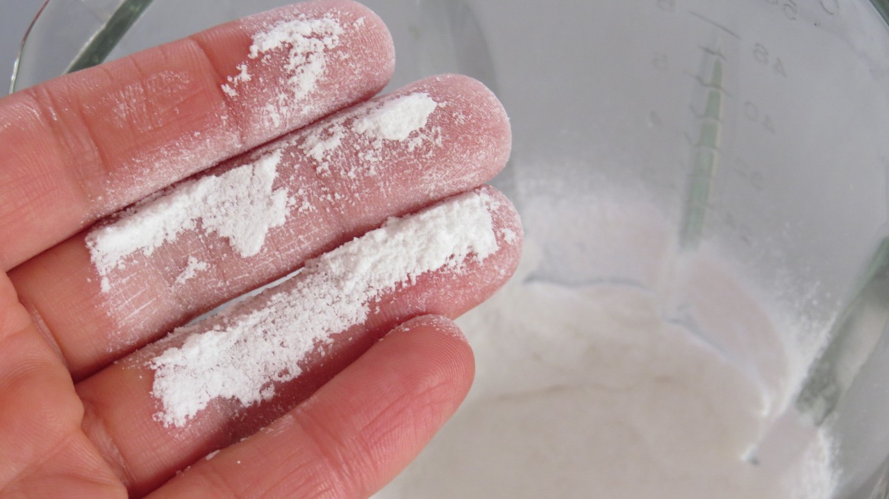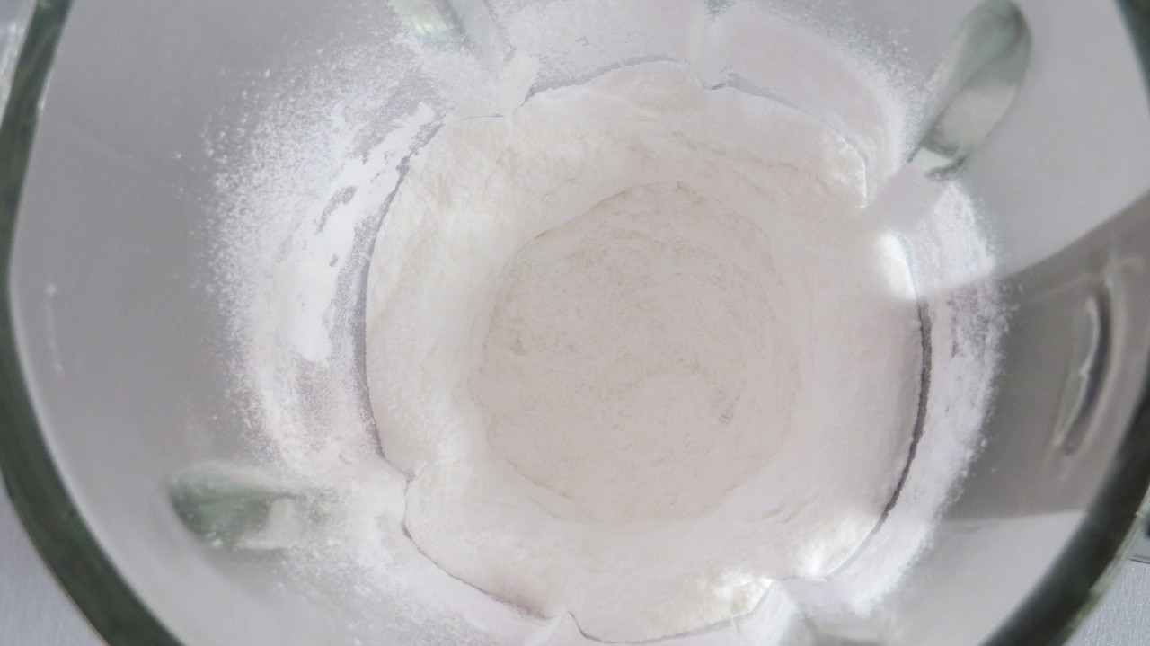 - Triture com intervalos de 30 segundos, pare o liquidificador, mexa e com os dedos veja quando fica um pó fino.