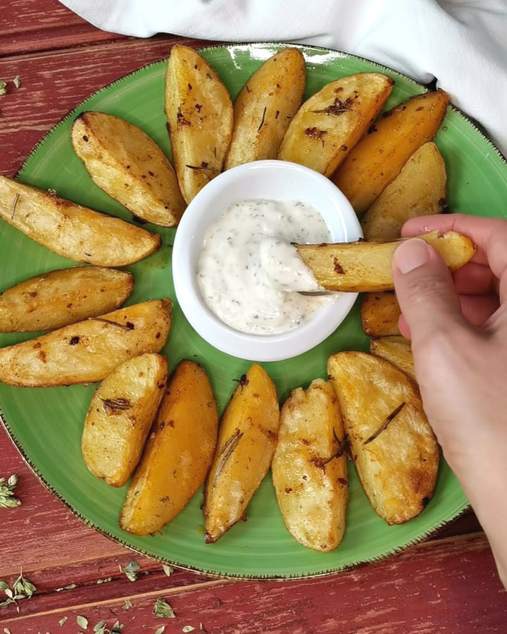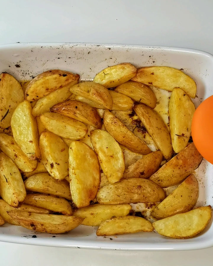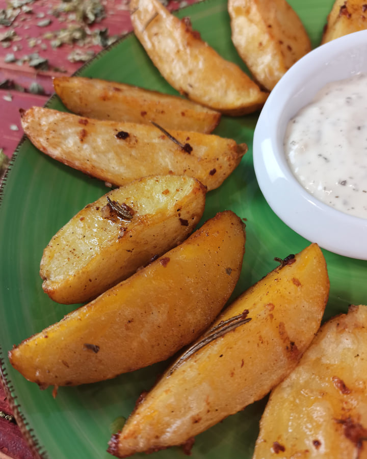 É difícil resistir à tentação de comer só uma, duas, ou mesmo três destas batatas assadas ao estilo rústico. Com a sua textura crocante por fora, interior macio e um aroma irresistível, estas batatas são uma verdadeira perdição que conquista qualquer paladar.