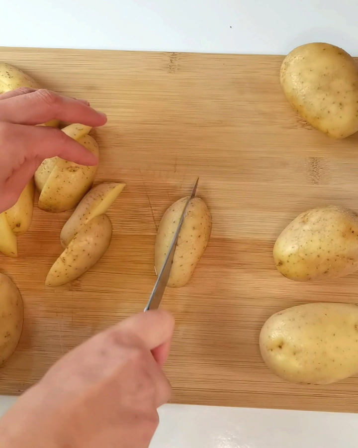 - Lava as batatas e corta-as em 4 no sentido do comprimento.