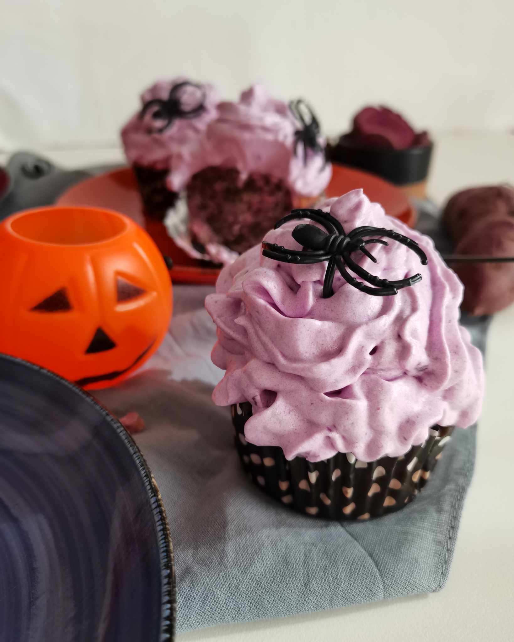 Para um toque final ainda mais criativo, experimenta decorar o bolo ou os cupcakes com um delicioso “chantilly” rosa feito com puré de batata doce roxa. Além de trazer um contraste visual bonito e delicado, o chantilly adiciona uma camada extra de sabor e textura. Esta decoração também permite personalizar a sobremesa para diferentes momentos festivos – desde uma temática de Halloween até uma apresentação mais simples e elegante, dependendo do evento.