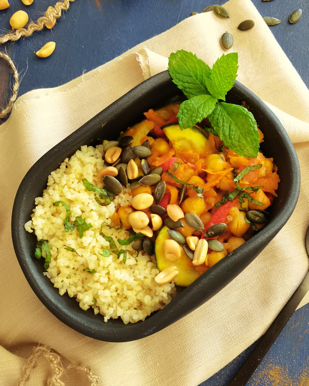 Por fim está pronto! Delicia-te com este bulgur com legumes ao estilo marroquino!