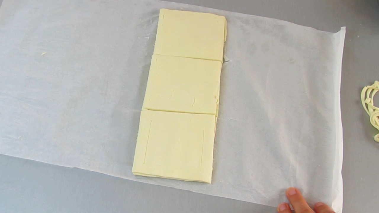 - Em cada quadrado e com a ponta de uma faca corte um quadrado no interior deixando um rebordo com cerca de 1 cm. Não vá com a faca até ao fundo, apenas cortando a primeira camada.