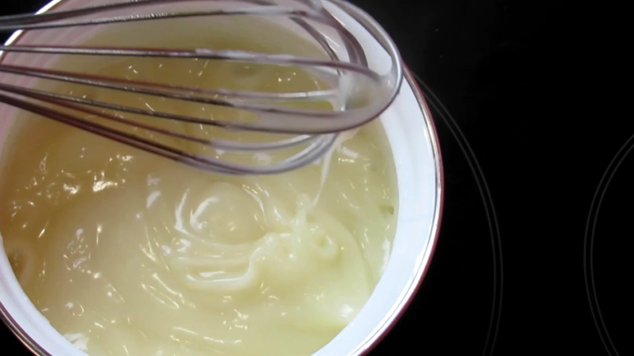 - Agora para o recheio: Dissolva o amido de milho num pouco do leite de coco (frio).