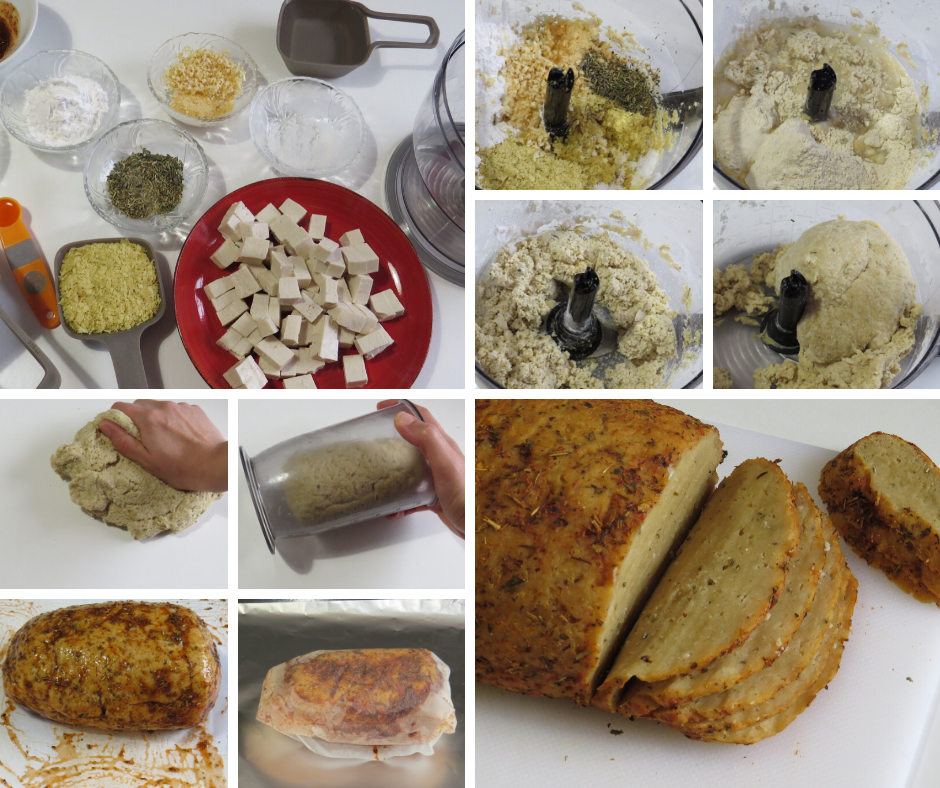 - Adicione todos os restantes ingredientes, com excepção do glúten de trigo e da água, e deixe o processador funcionar até que a mistura forme uma massa homogénea, coloque de seguida o glúten e a água e deixe o processador funcionar por algum tempo, ajudará a amassar a massa para que fique mais firme. Se a massa parecer um pouco seca demais, pode adicionar mais algumas colheres de sopa de água, mas poucas! Eu faço sempre com 1/2 chávena de água e não necessito de mais. Vá verificando.