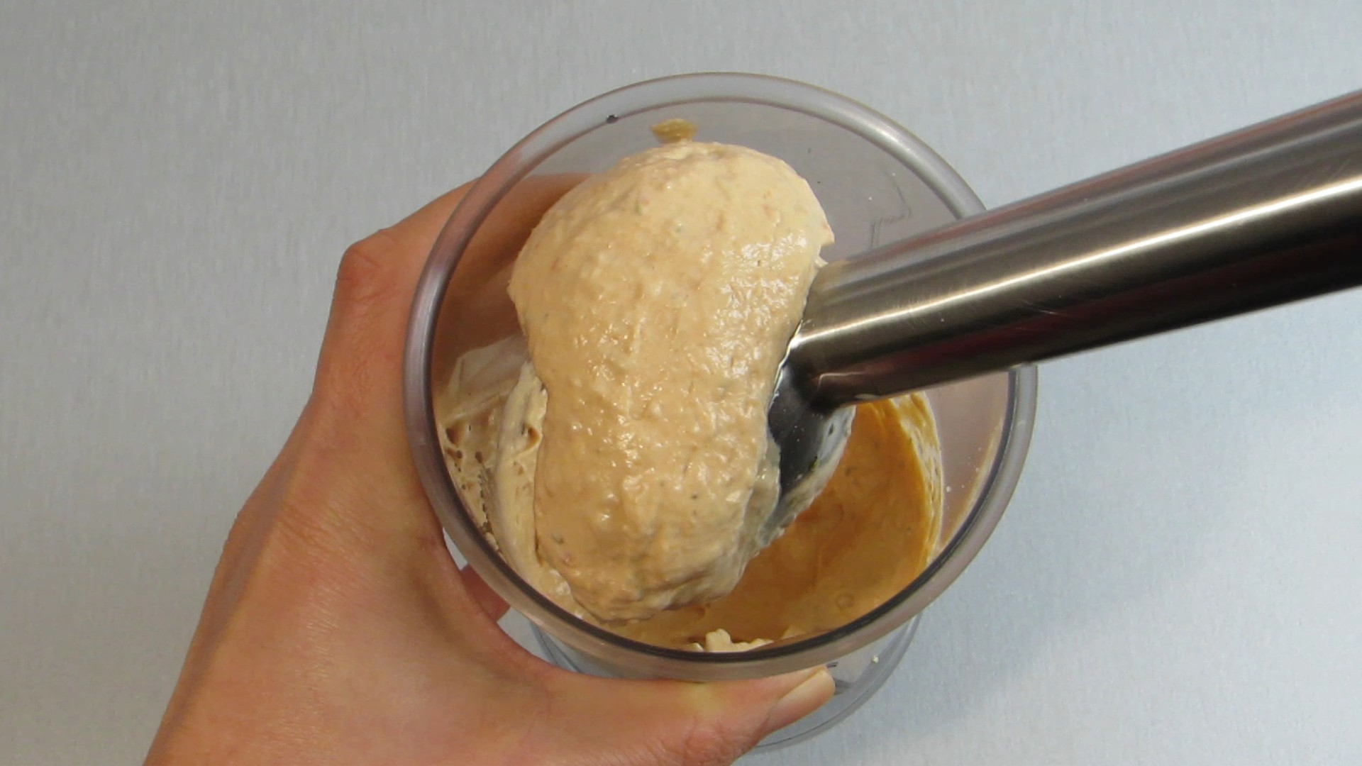 - Triture tudo com a varinha mágica até obter um creme homogéneo.
