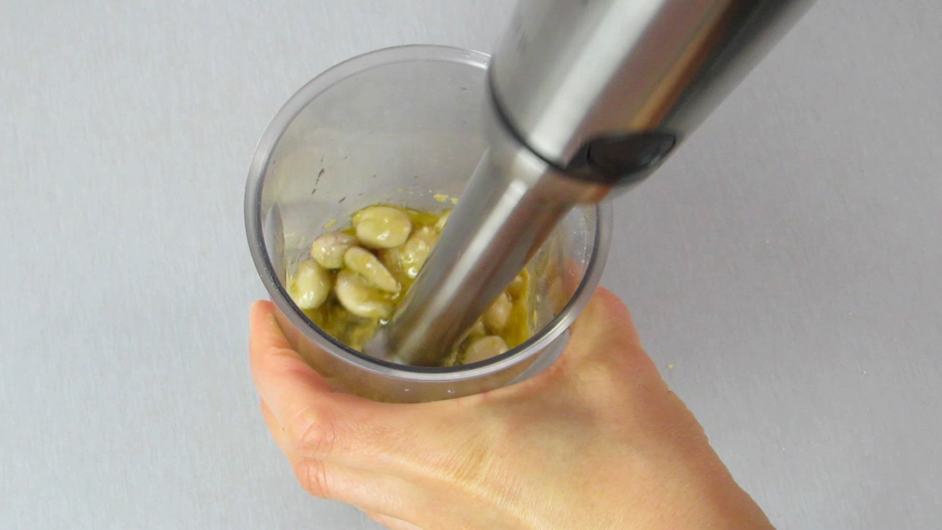 - Triture com a varinha mágica até obter um creme homogéneo. Prove e rectifique temperos se necessário.