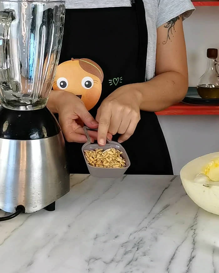 - Retira as sementes do melão e lava-as muito bem.