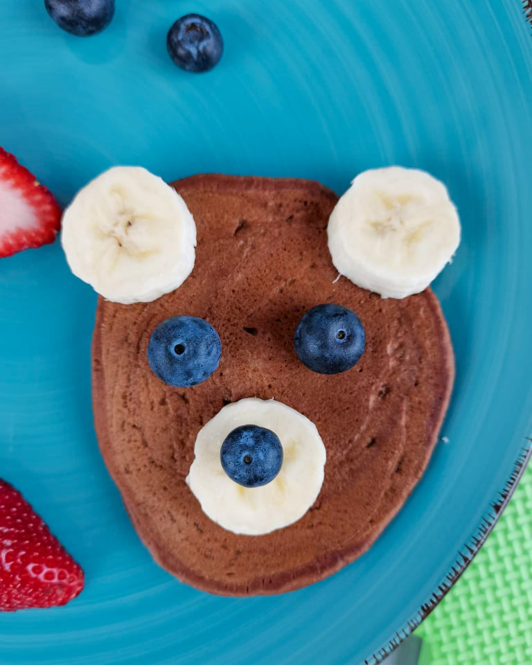 Primeiramente, vamos celebrar as nossas crianças, que além de serem o nosso bem mais precioso, são também uma fonte inesgotável de amor verdadeiro. Assim, e aproveitando este fim-de-semana do Dia da Criança, achei que, estas panquecas de chocolate seriam uma receita perfeita para fazer com as nossas crianças. Será de certeza um momento muito feliz, divertido e guloso. Por outro lado, pode também ser um momento criativo onde as crianças podem dar asas à sua imaginação, e com a ajuda de pedaços de fruta, podem criar animais, carros, comboios ou princesas, por exemplo.