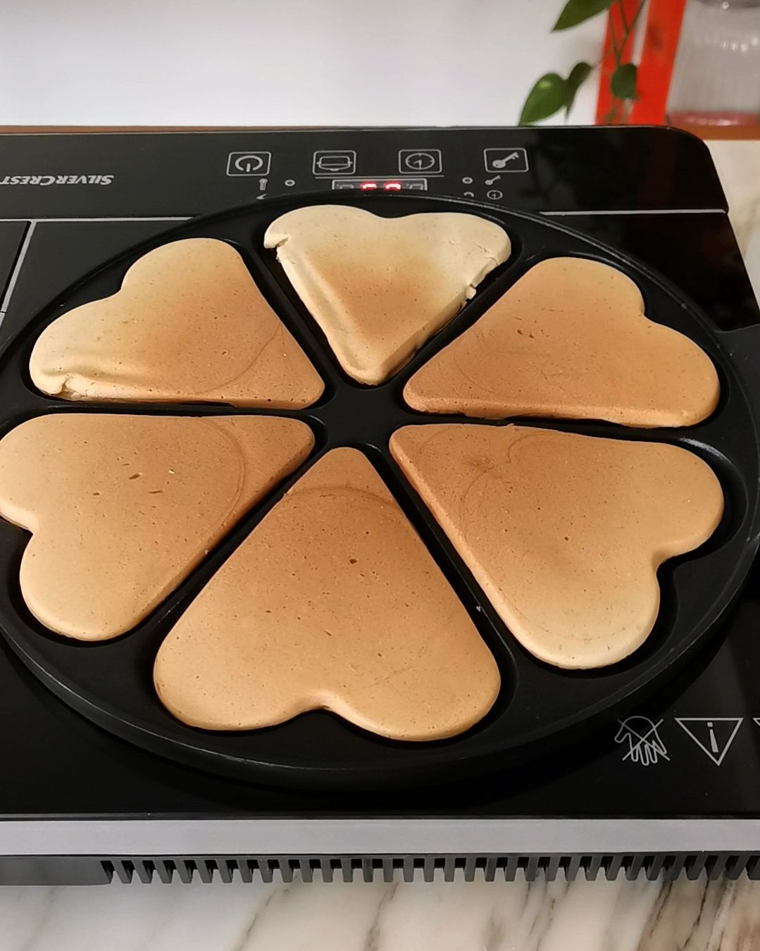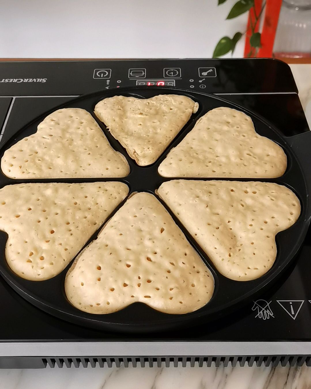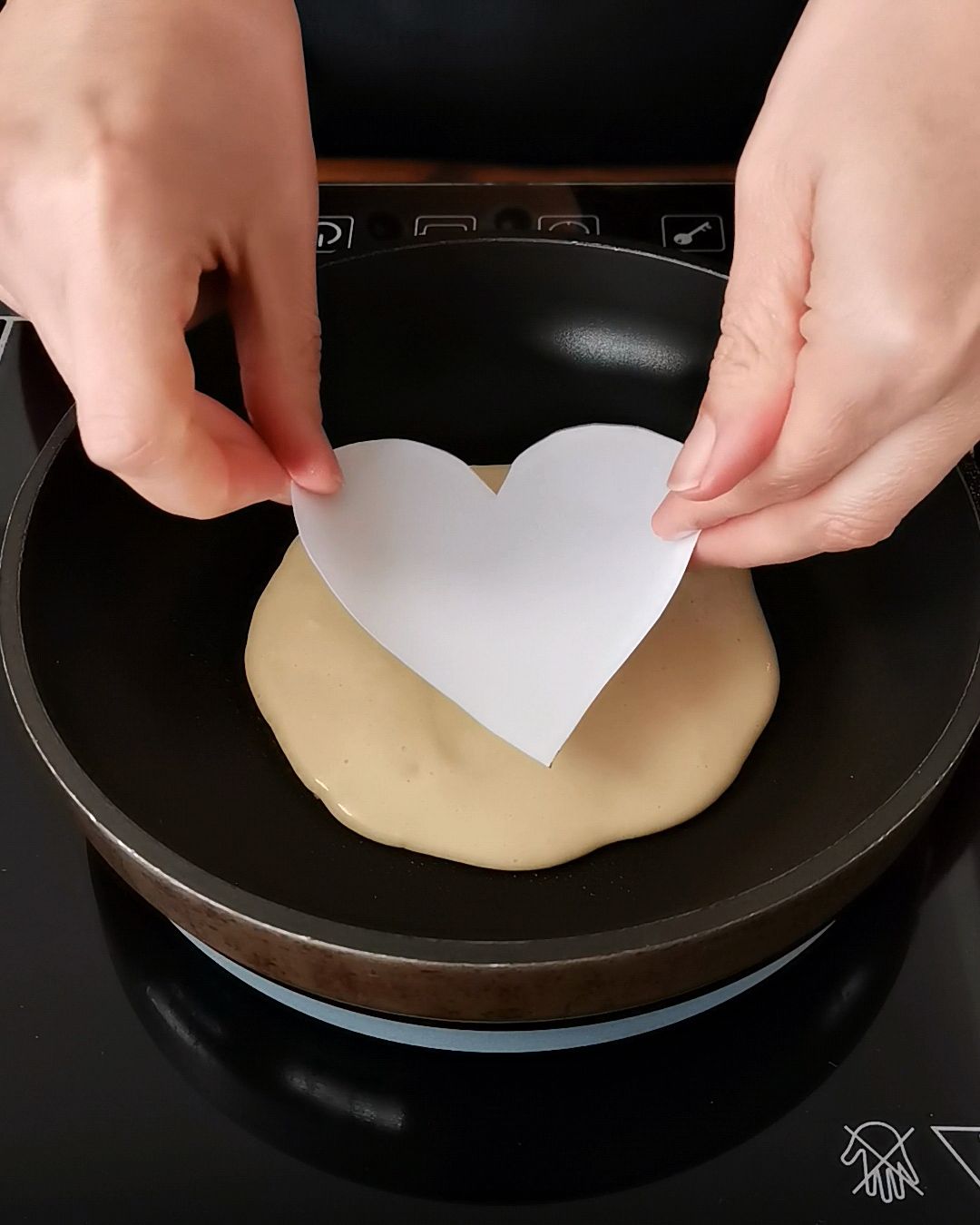 - Se tiver, pode utilizar uma frigideira para panquecas com formatos de coração.