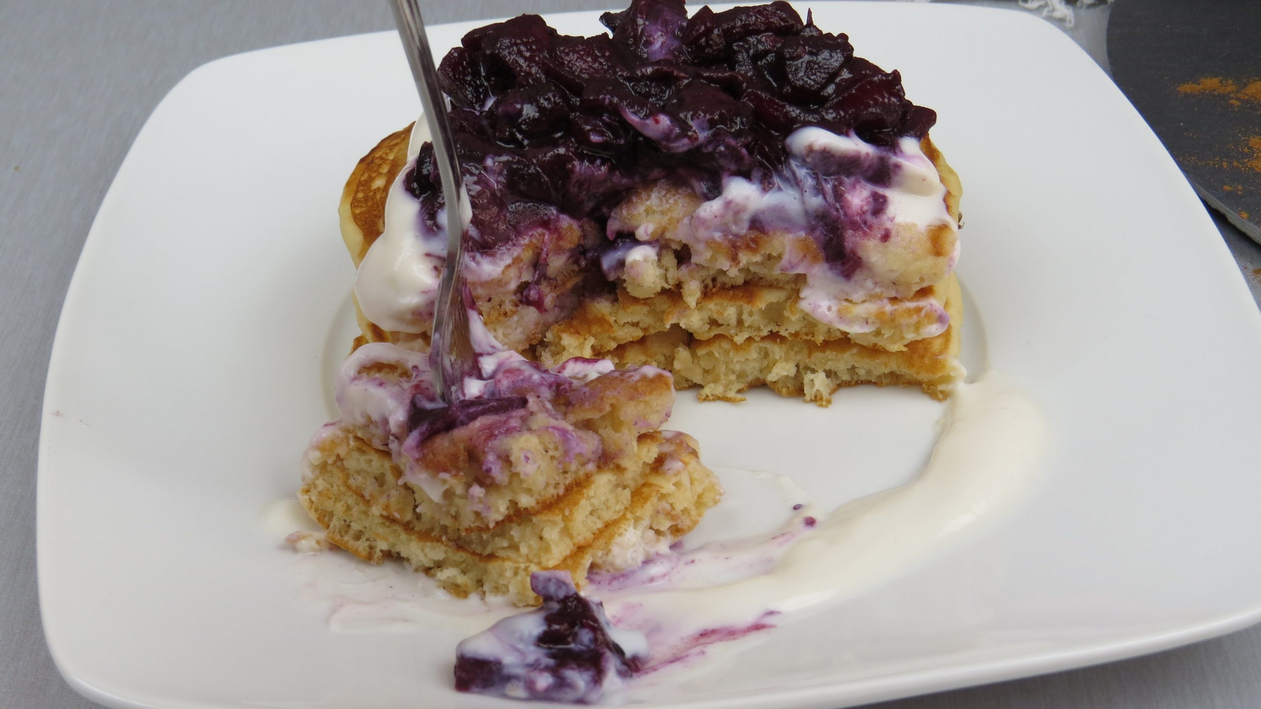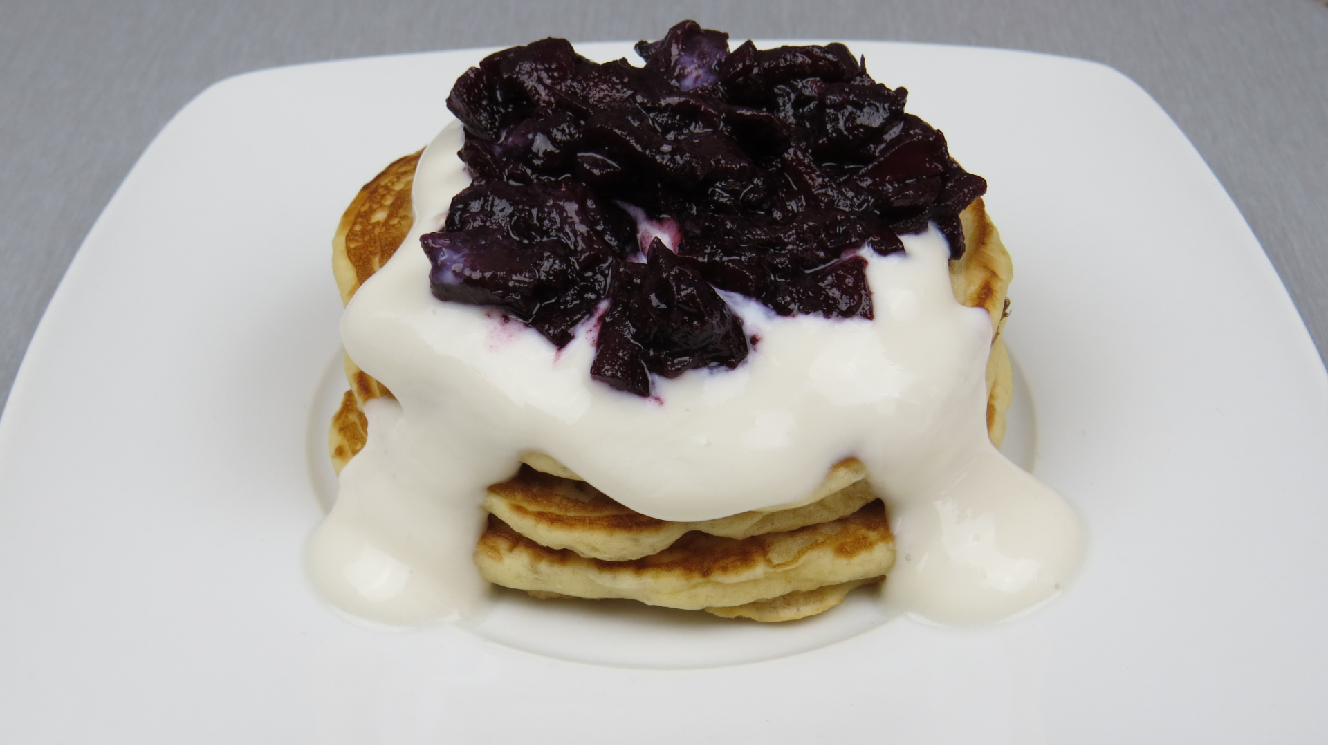 Deixo-te esta sugestão para um lanche especial, panquecas com iogurte natural de soja e doce de maçã, mirtilo e canela, é tão bom, reconforta até a alma…