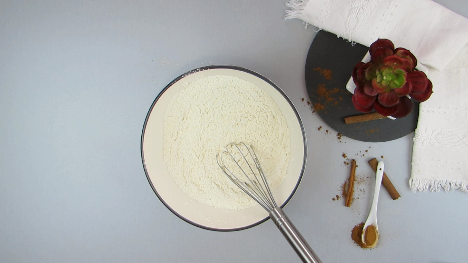- Num recipiente, junta a farinha e o açúcar e mexe com um fue ou peneira.