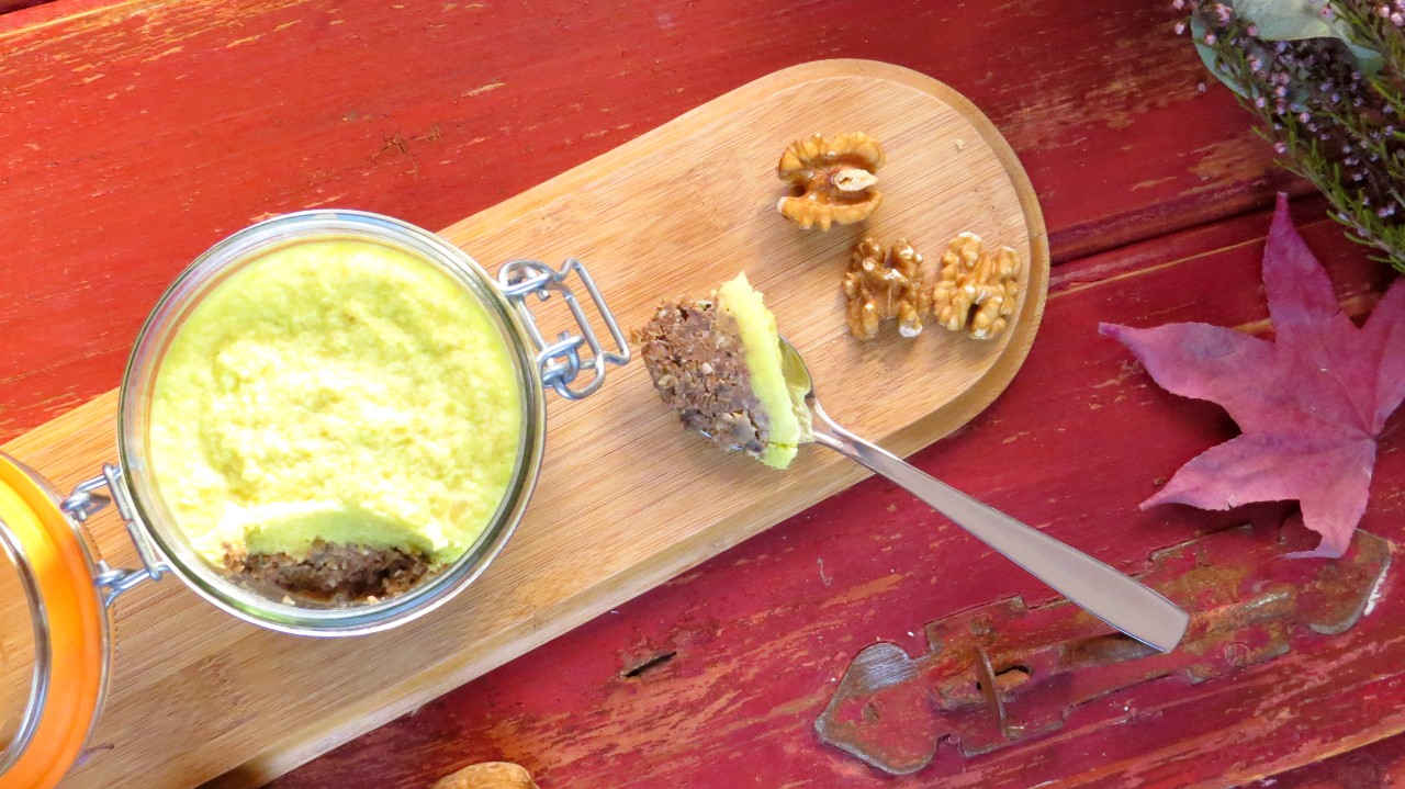 Como alternativa à parte amarela, pode derreter manteiga vegetal e verter por cima do paté.