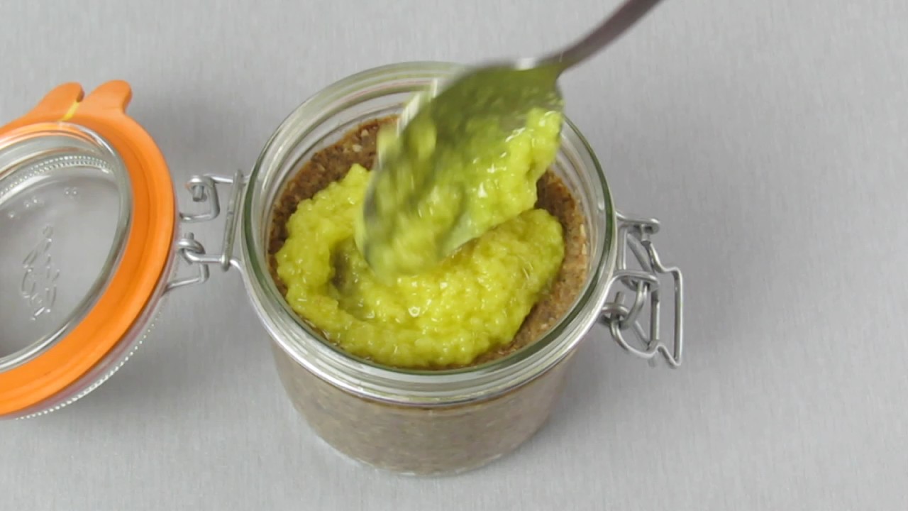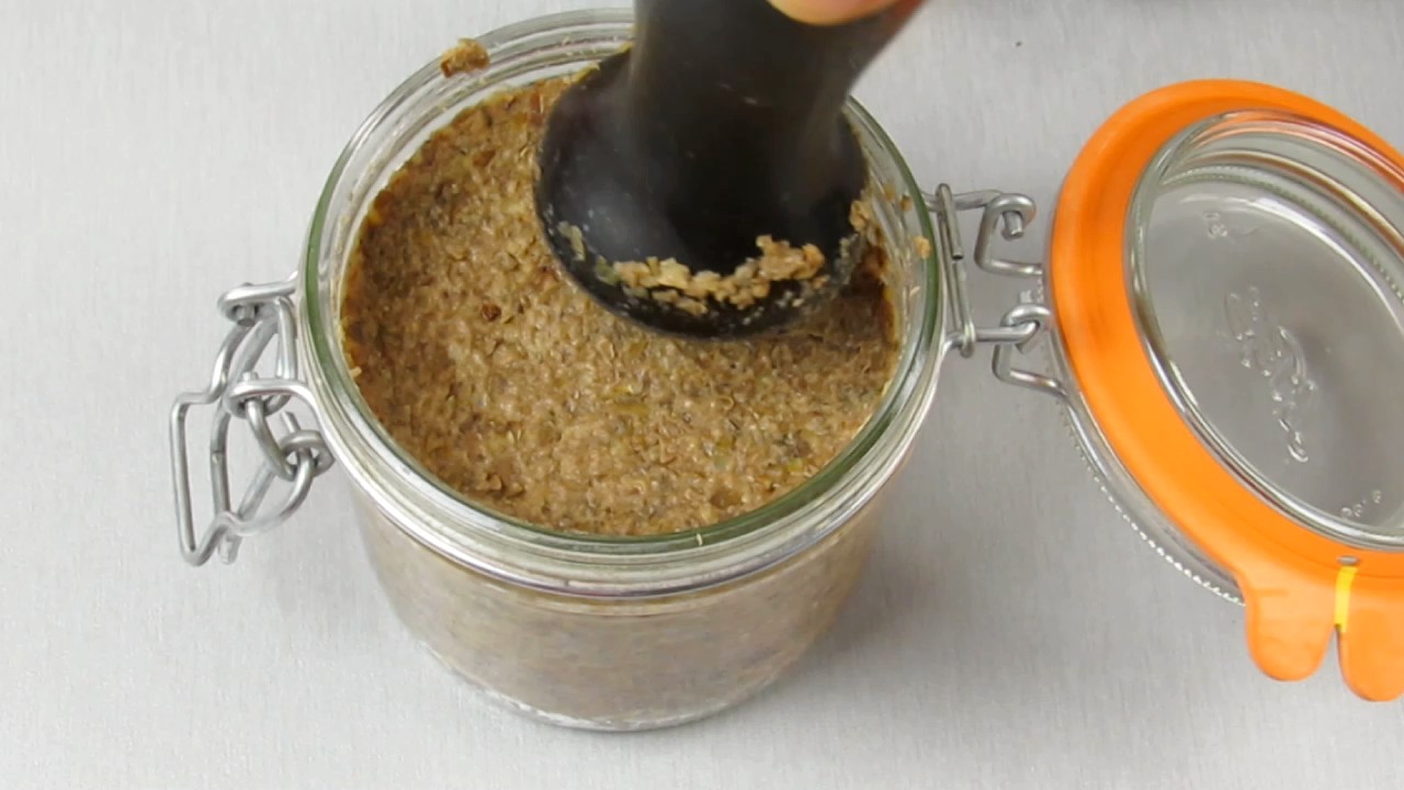 - Coloque-a no frasco, em cima do paté e com cerca de 1 cm de altura.