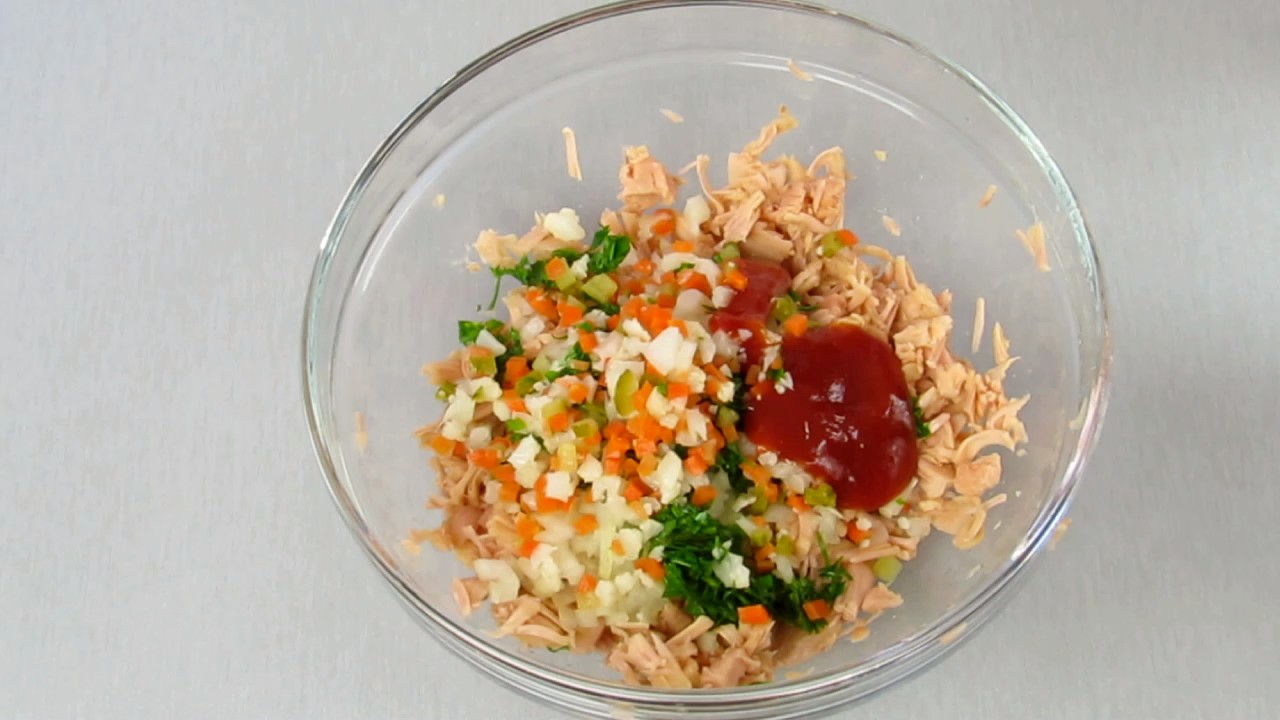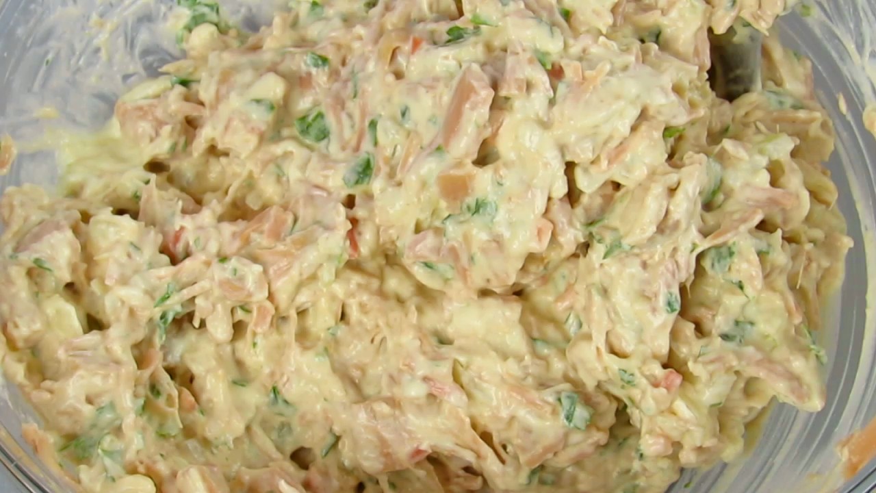 - Coloque a jaca desfiada numa tijela média e acrescente a cebola, a salsa, os picles, o ketchup e a maionese. Na maionese comece por 2 colheres de sopa e vá acrescentando ao seu gosto. Eu coloquei 4 colheres no total.
