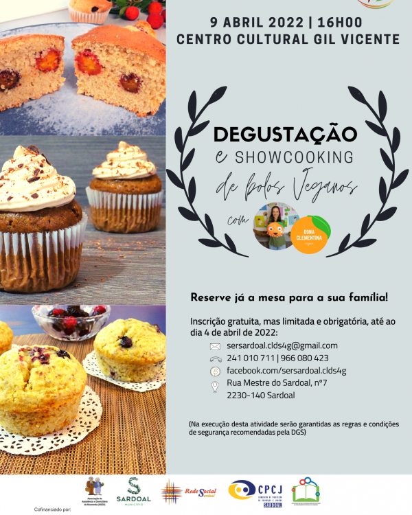 - No passado dia 9 de Abril decorreu no Centro Cultural Gil Vicente em Sardoal uma degustação e showcooking de bolos veganos. A degustação foi acompanhada de uma bebida (chá, café […]