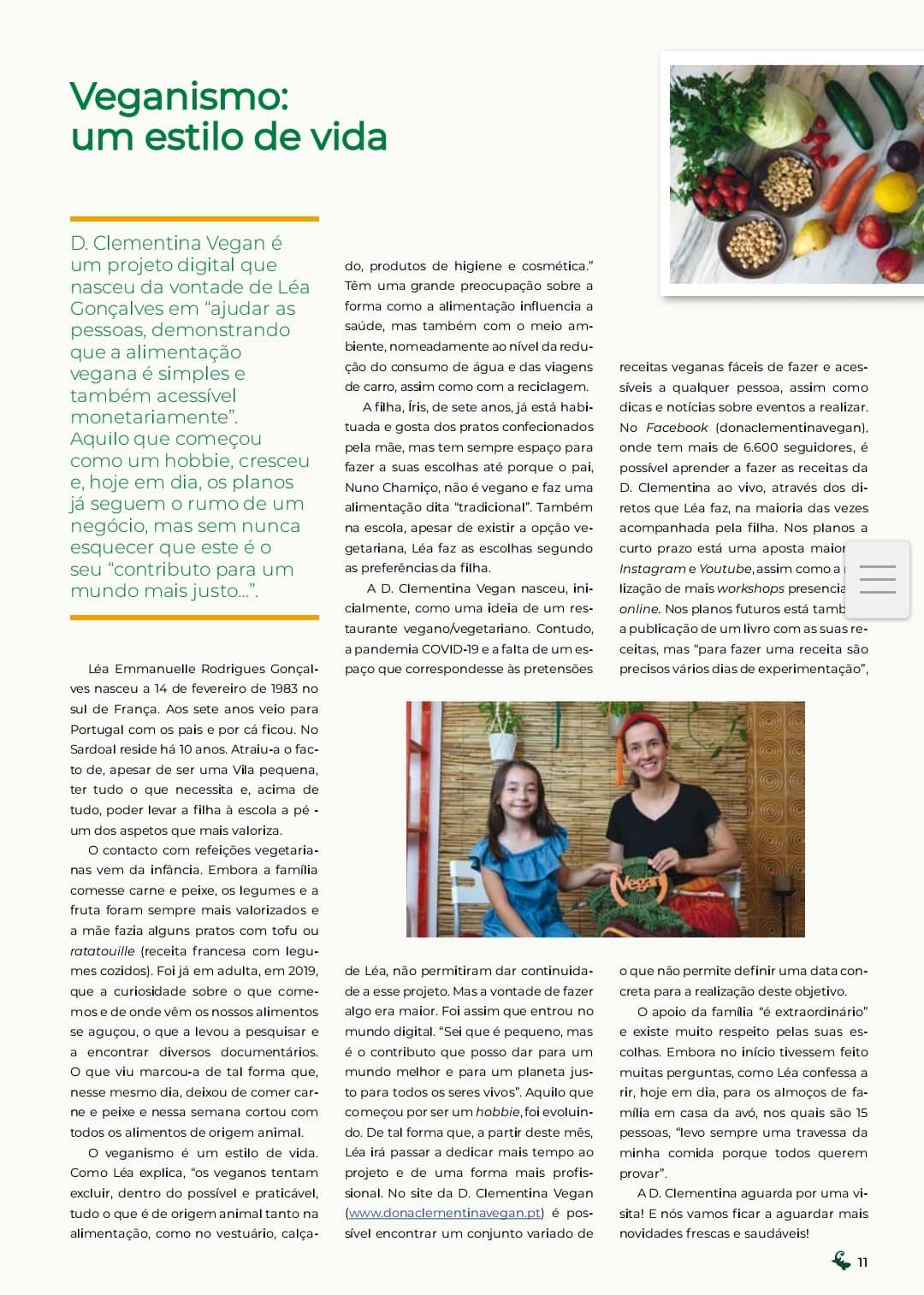A Dona Clementina teve o privilégio de ser capa do Boletim “O Sardoal”. É um orgulho enorme poder ter este destaque com o tema do veganismo.
