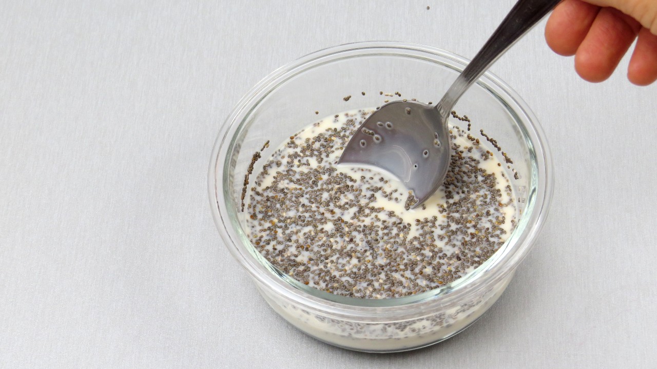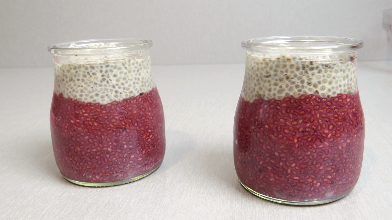 Junte a chia com o leite vegetal e proceda da mesma forma que a parte vermelha.