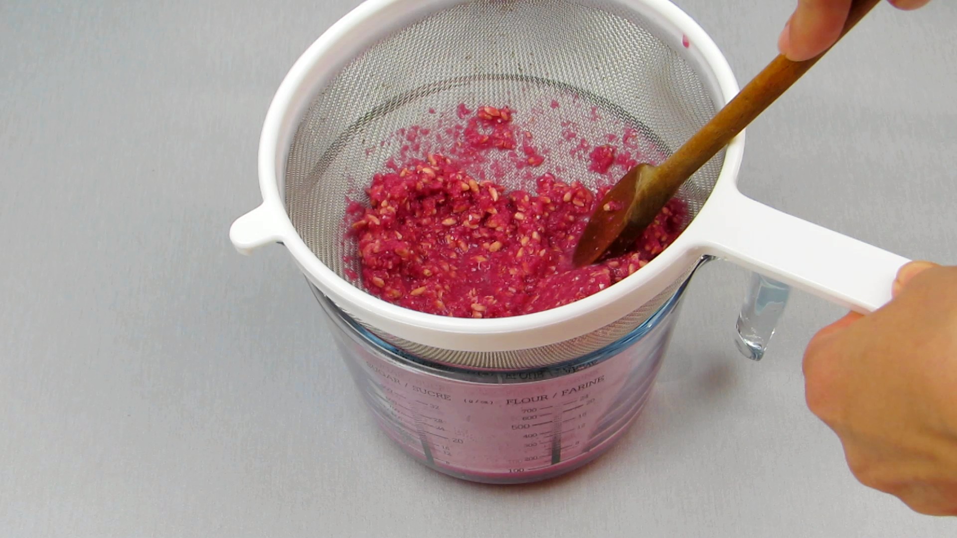 Para fazer o sumo pode usar um liquidificador (foi o que usei) e depois coe ou utilizar um almofariz esmagando as sementes e coando no final.