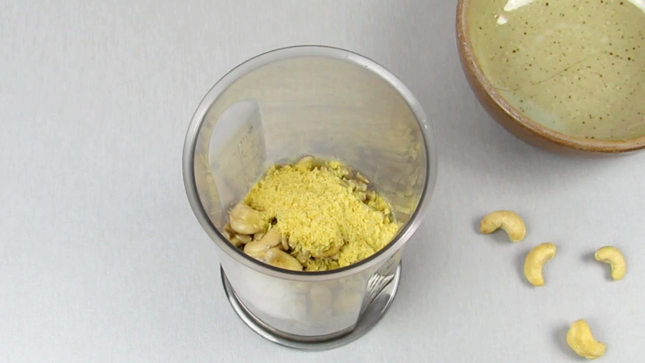 - Deite o caju e as sementes de girassol numa tigela com água e coloque no micro-ondas por cerca de 3 minutos e escorra.