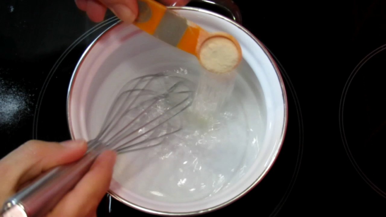 - Numa panela, coloque a água e o ágar-ágar, mexa para dissolver bem o pó. Leve ao lume, e vá mexendo, quando começar a ferver baixe o lume e acrescente a mistura de caju. Vá sempre mexendo por cerca de 3 minutos, ficará uma massa mais elástica e espessa.