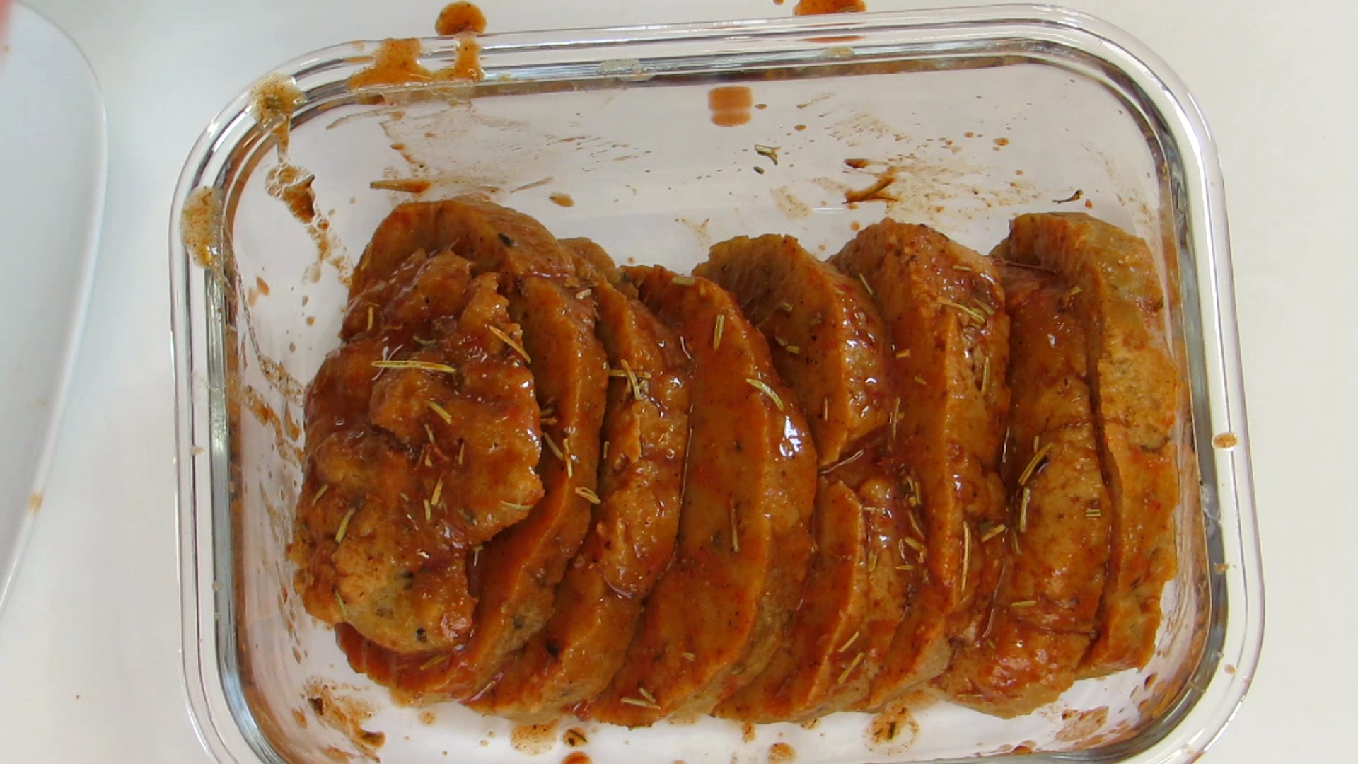- Pincele o seitan com a marinada e leve ao frigorífico por um mínimo de 4 horas sendo o ideal de um dia para o outro.