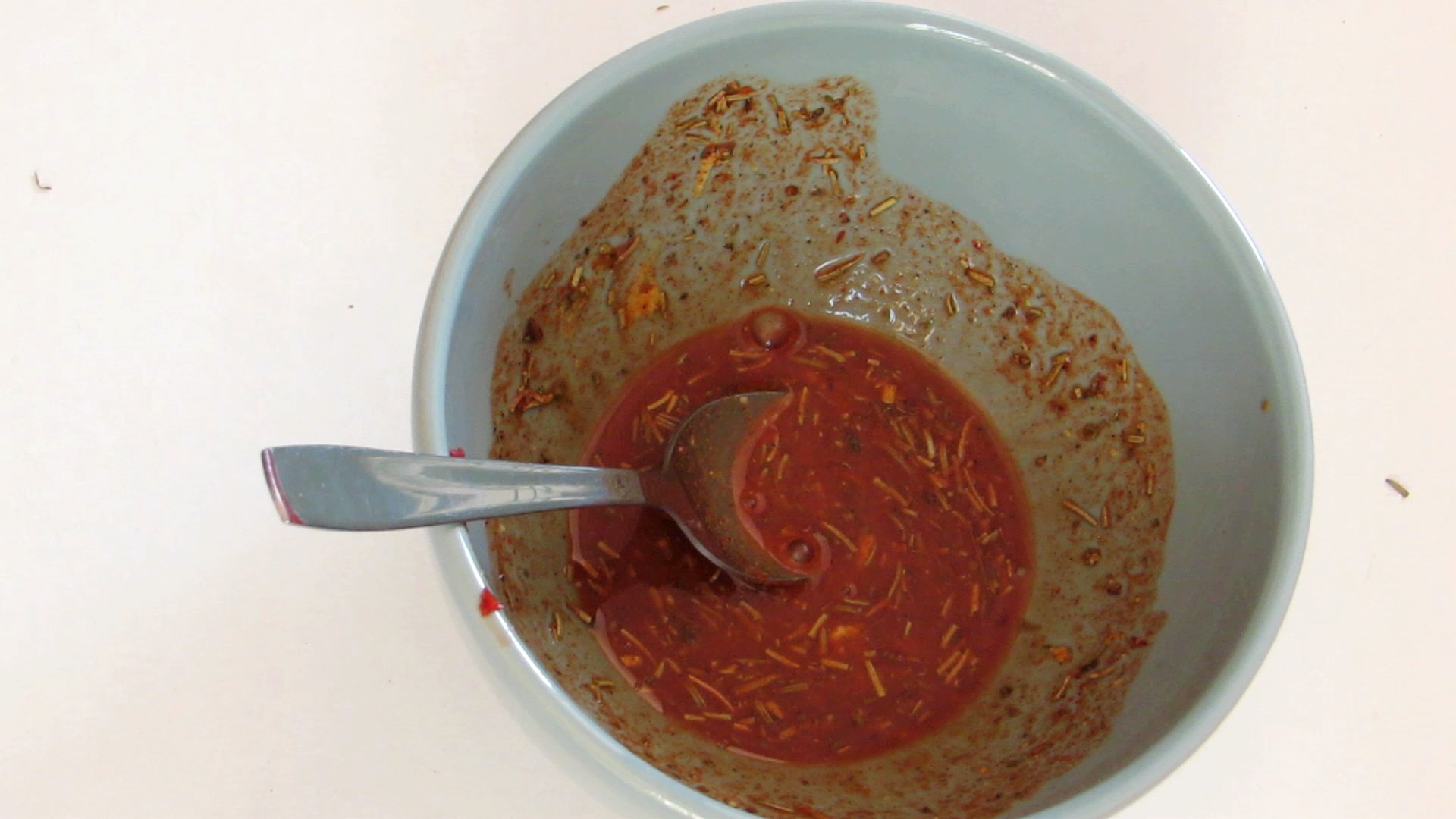 - Coloque todos os ingredientes (excepto o seitan) numa tigela e misture bem.