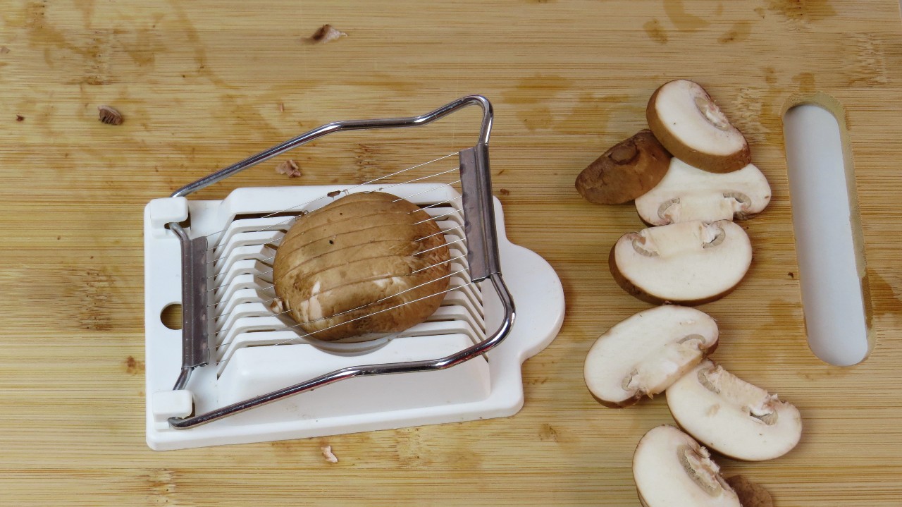 - ou para fatiá-los mais finos e por igual com um cortador de ovo