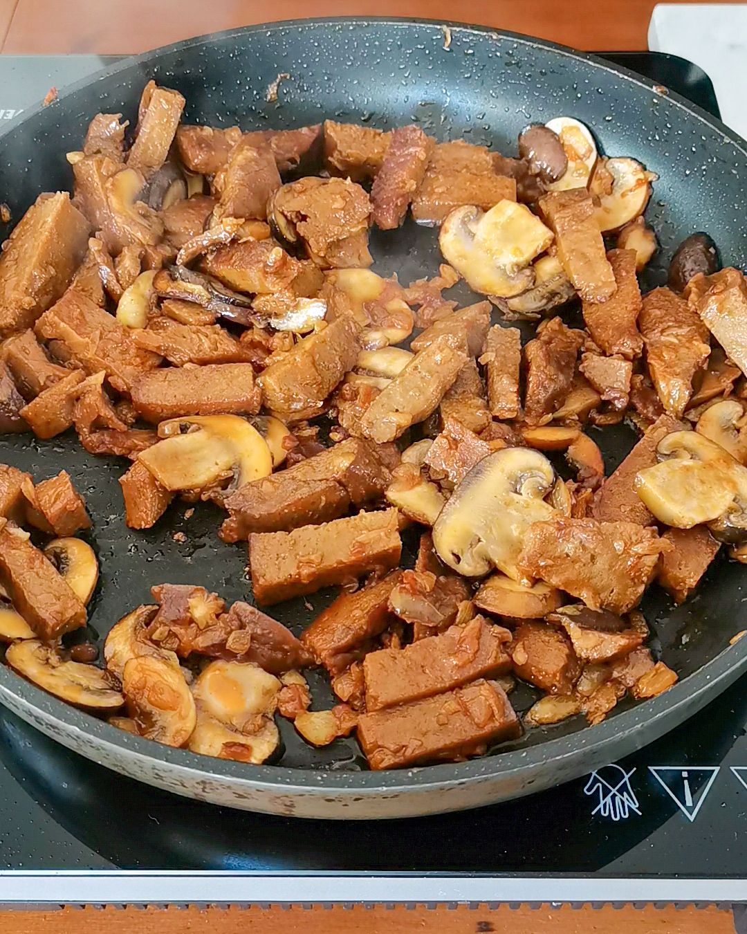 - Deita o seitan na frigideira, mexe e deixa por breves minutos.
