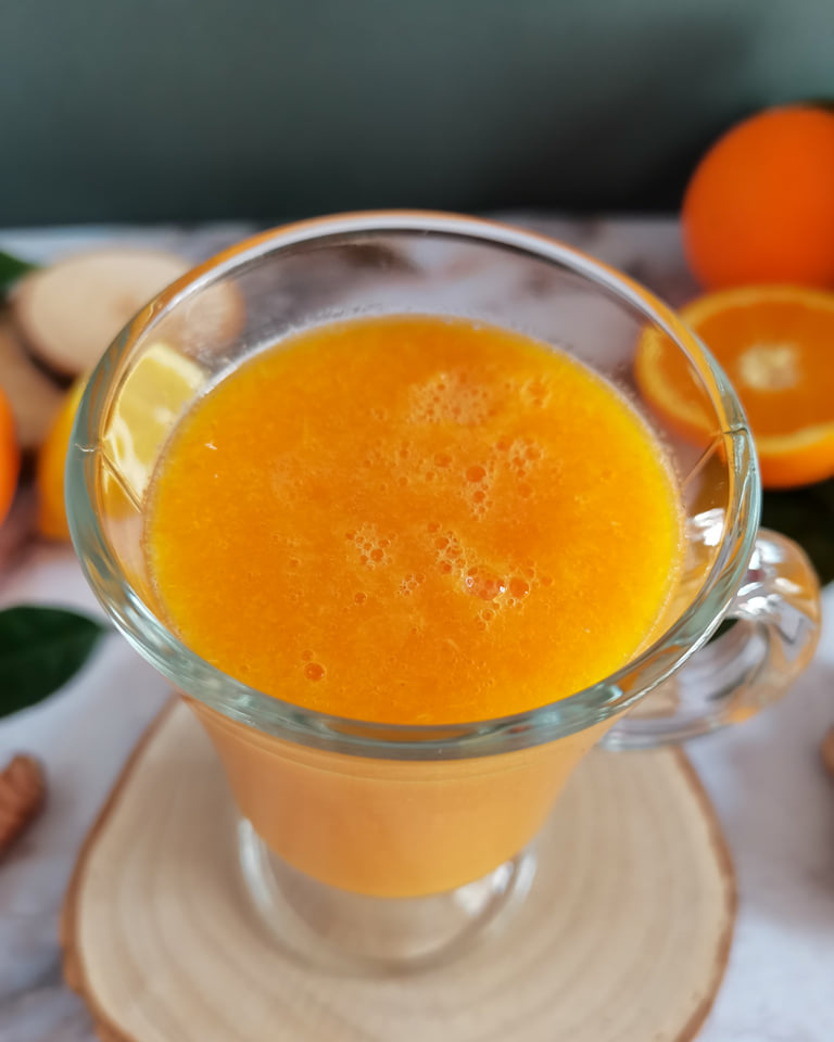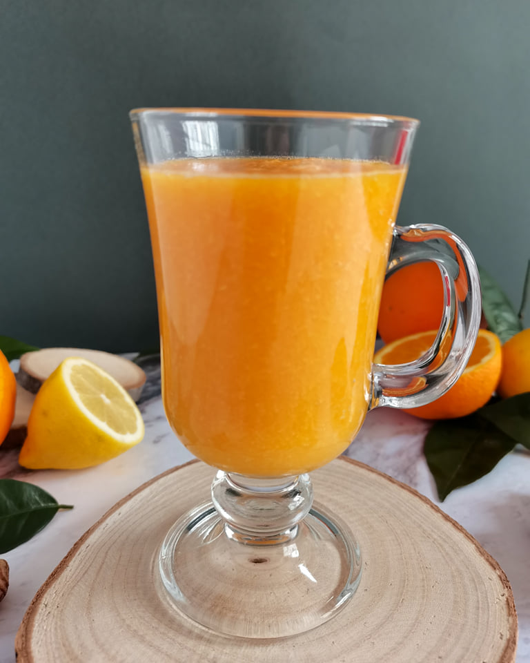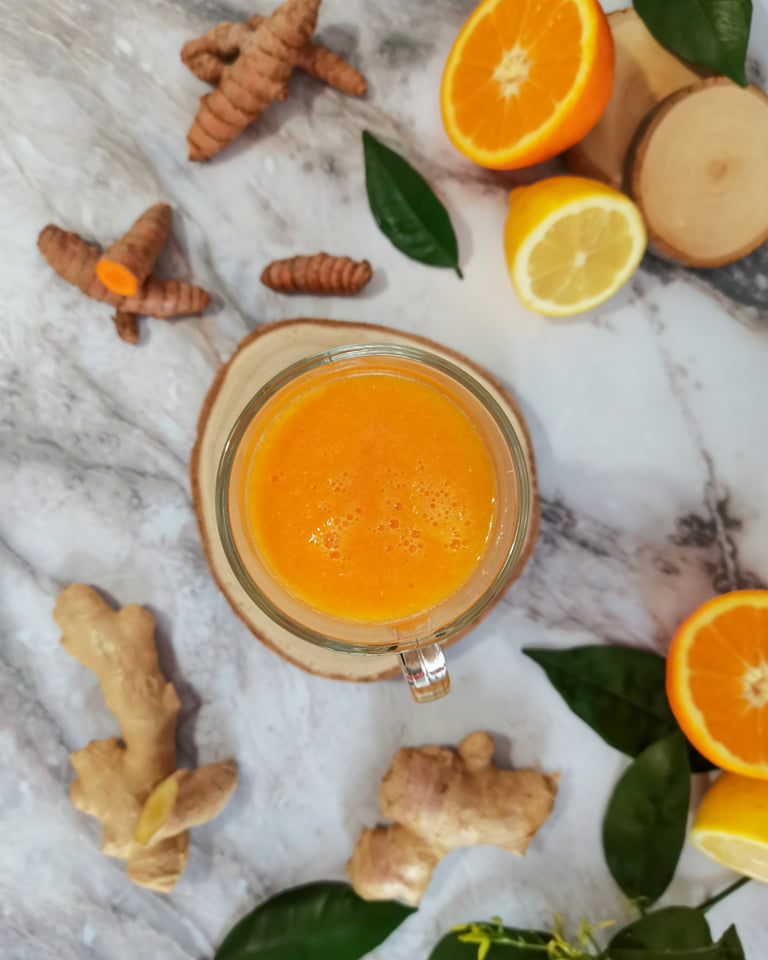 - Com laranja, limão, curcuma, gengibre e cenoura.