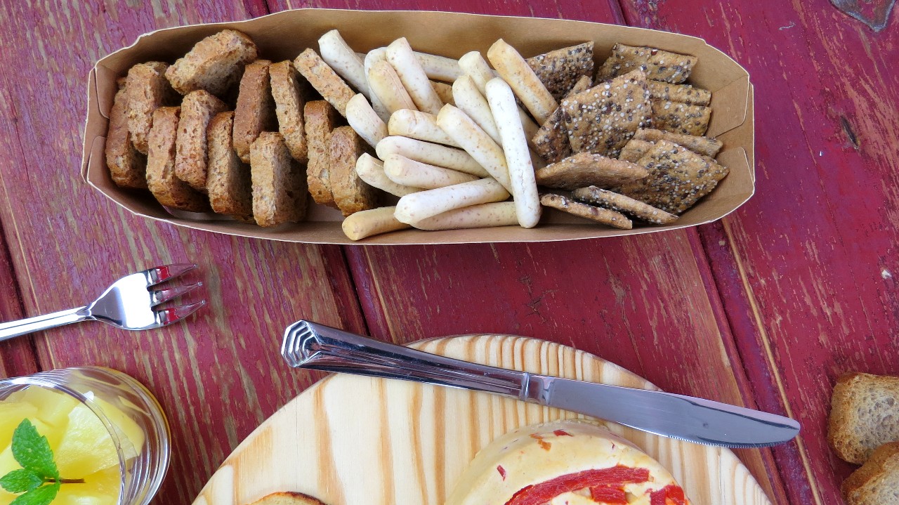 Deverá ter um bom equilíbrio de sabores doces e salgados. Costumo utilizar, patés, queijos, fruta fresca, frutos secos, pão torrado, bolachas, tostinhas, gressinhos, doce de abóbora ou marmelada, azeitonas e tomates cherry. Escolha os que gosta mais.