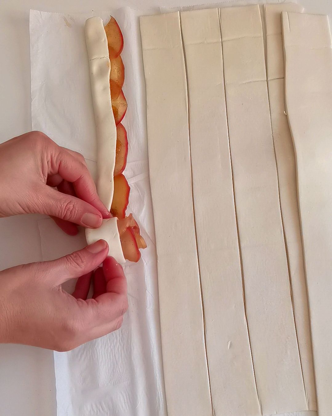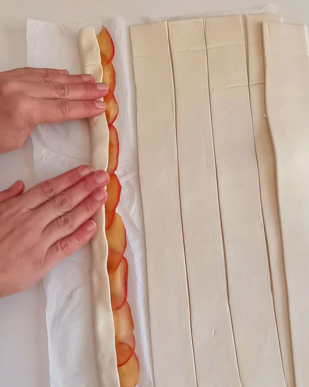 - Repete para as restantes 5 tiras de massa.