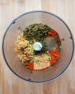 - Primeiro, coloca todos os ingredientes num processador pequeno.