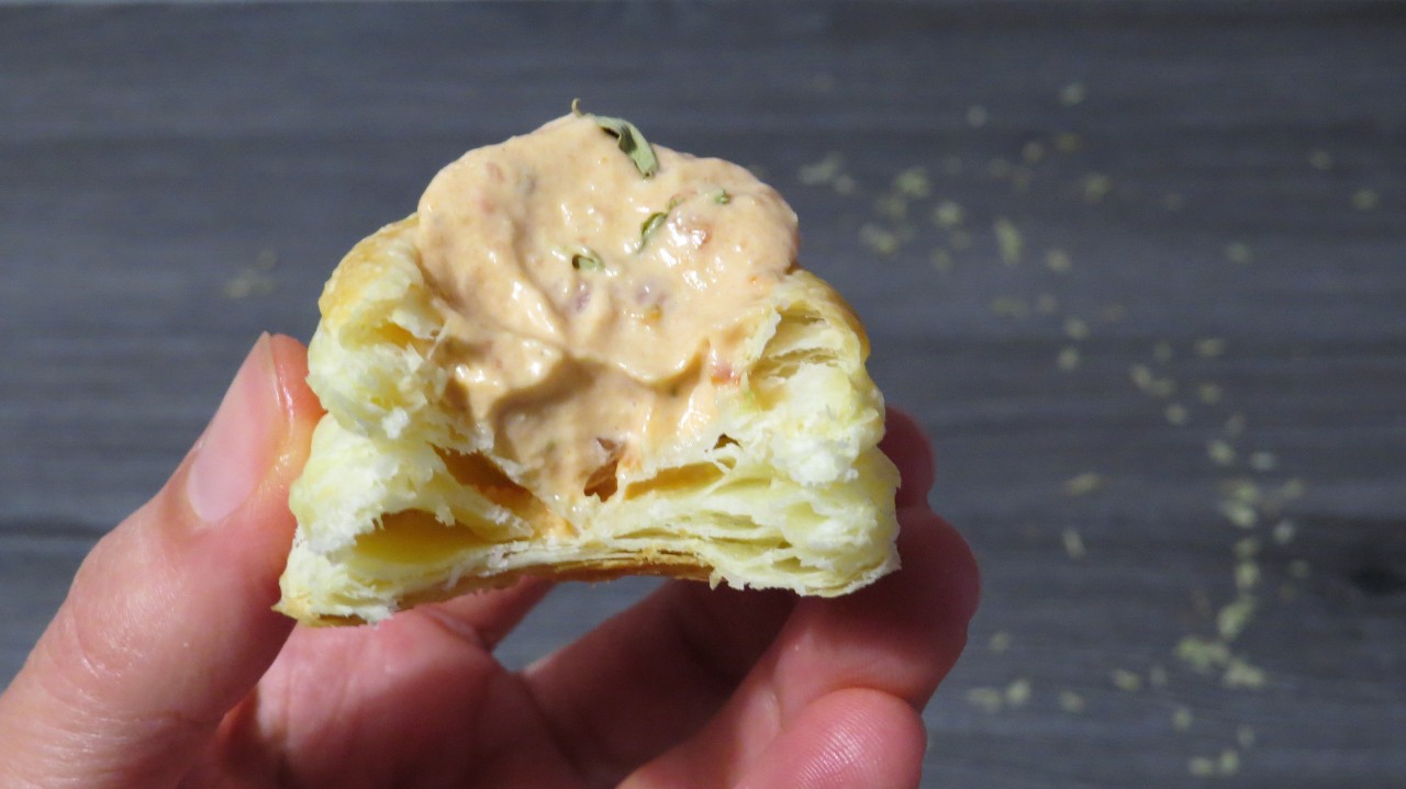 - O recheio destes vol-au-vent são o creme de tomate seco ao sol. Tem aqui a receita.