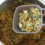 - Retire do lume e acrescente os orégãos e a granola. Coloque o recheio num prato para que arrefeça mais rapidamente.